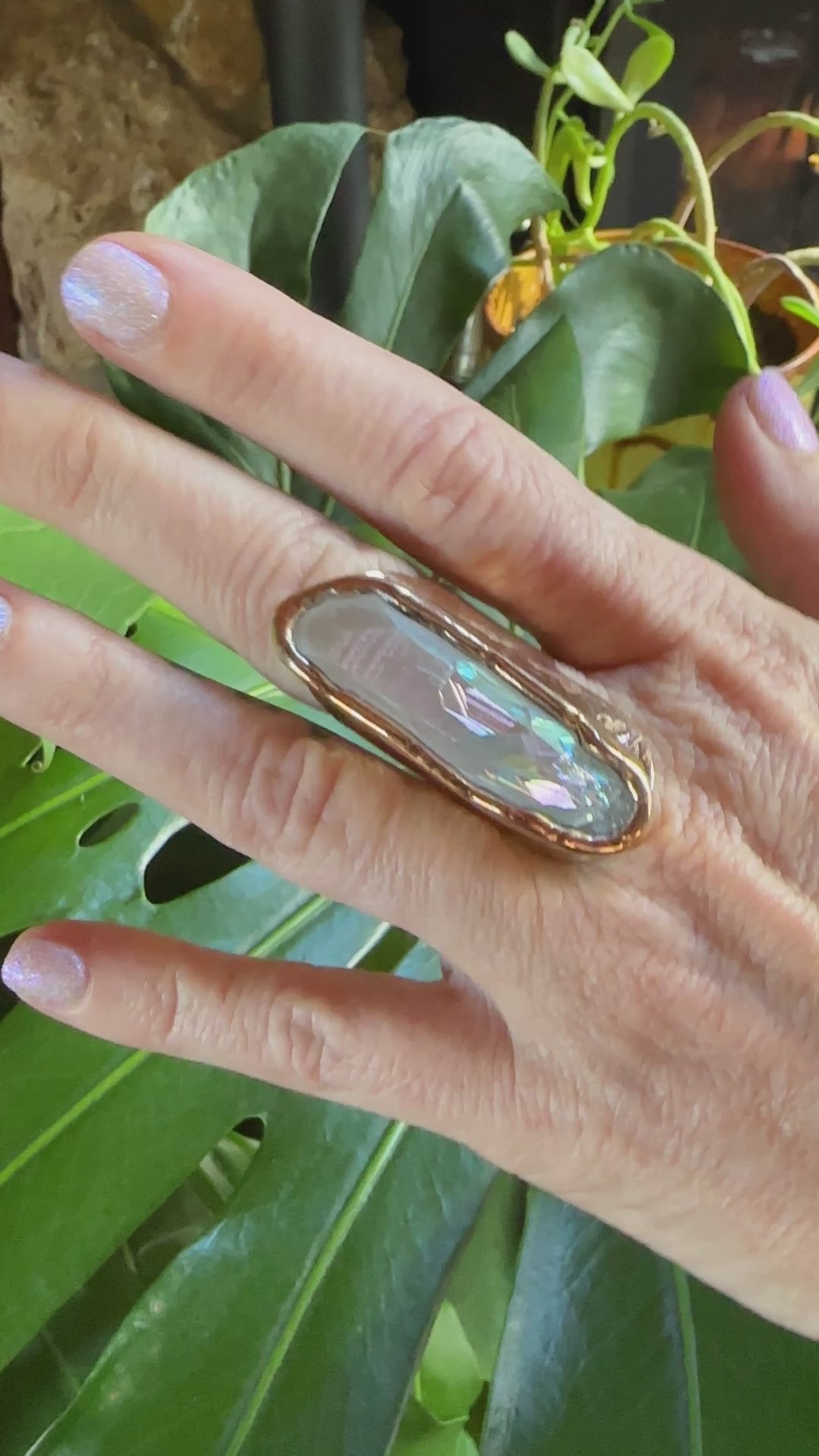 A stunning and mystical piece of jewelry that combines the unique beauty of Lemurian quartz with timeless elegance. This ring is a symbol of spiritual growth, enlightenment, and the enduring allure of natural gemstones.