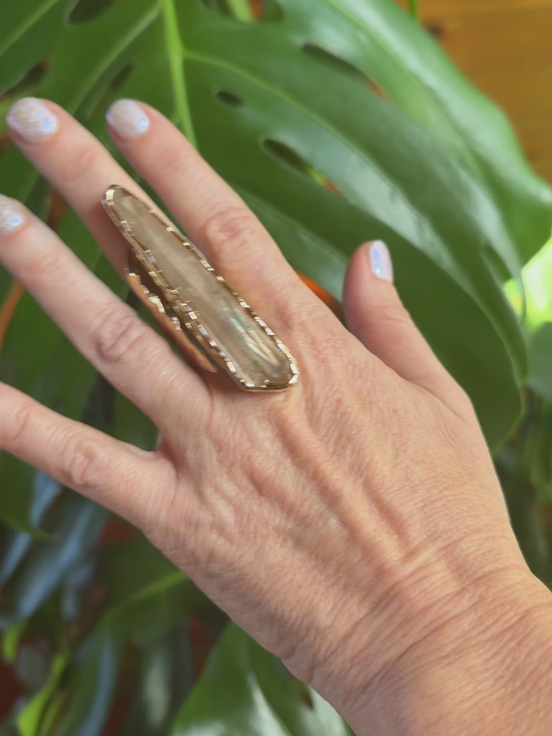 A stunning and mystical piece of jewelry that combines the unique beauty of Lemurian quartz with timeless elegance. This ring is a symbol of spiritual growth, enlightenment, and the enduring allure of natural gemstones.