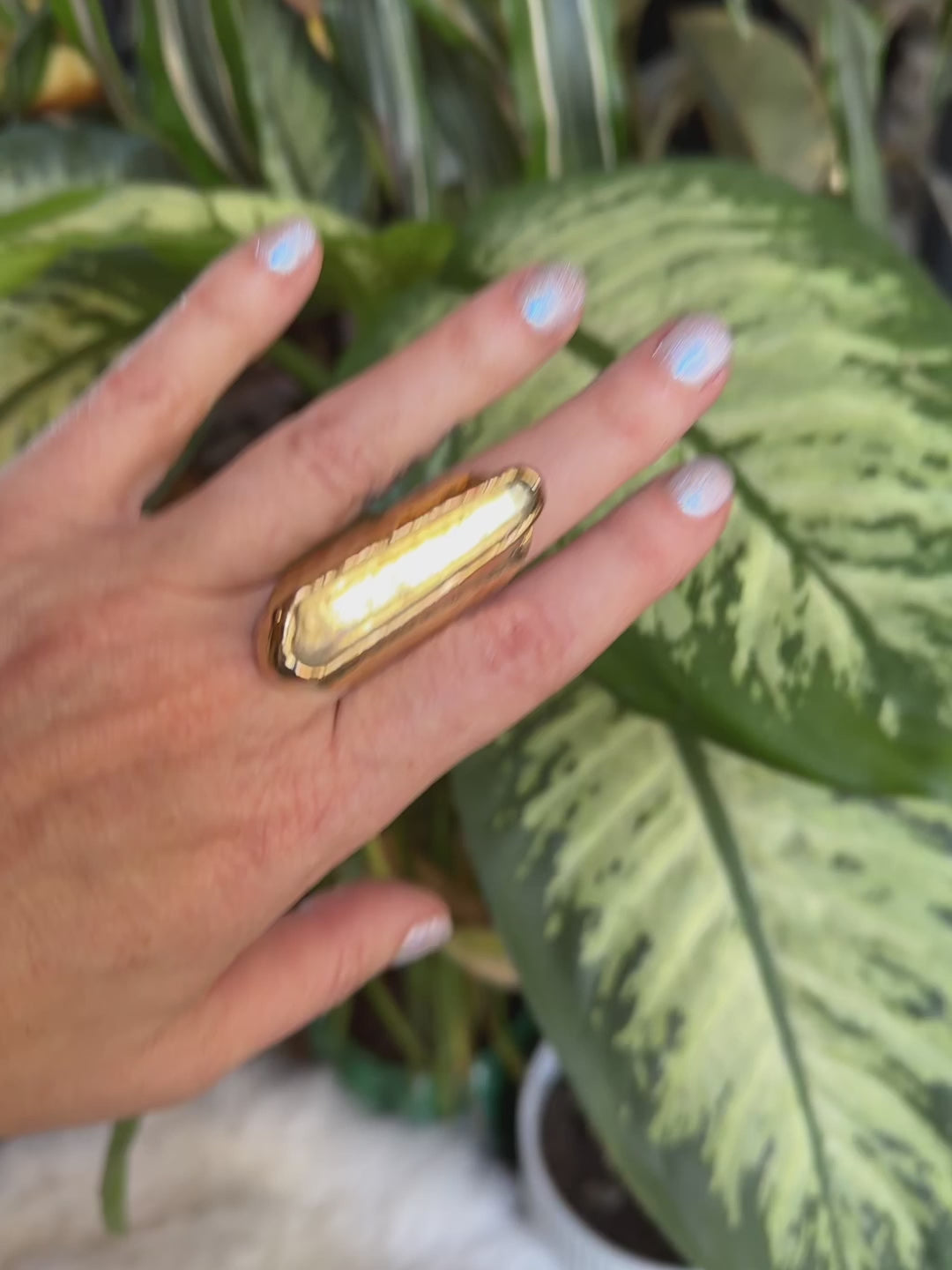 Lemurian quartz stone set in brass with a very heavy real 24k overlay.