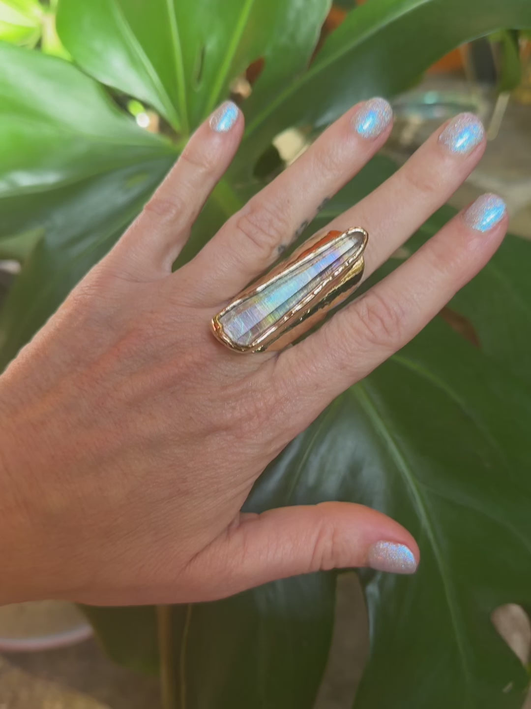 A stunning and mystical piece of jewelry that combines the unique beauty of Lemurian quartz with timeless elegance. This ring is a symbol of spiritual growth, enlightenment, and the enduring allure of natural gemstones.
