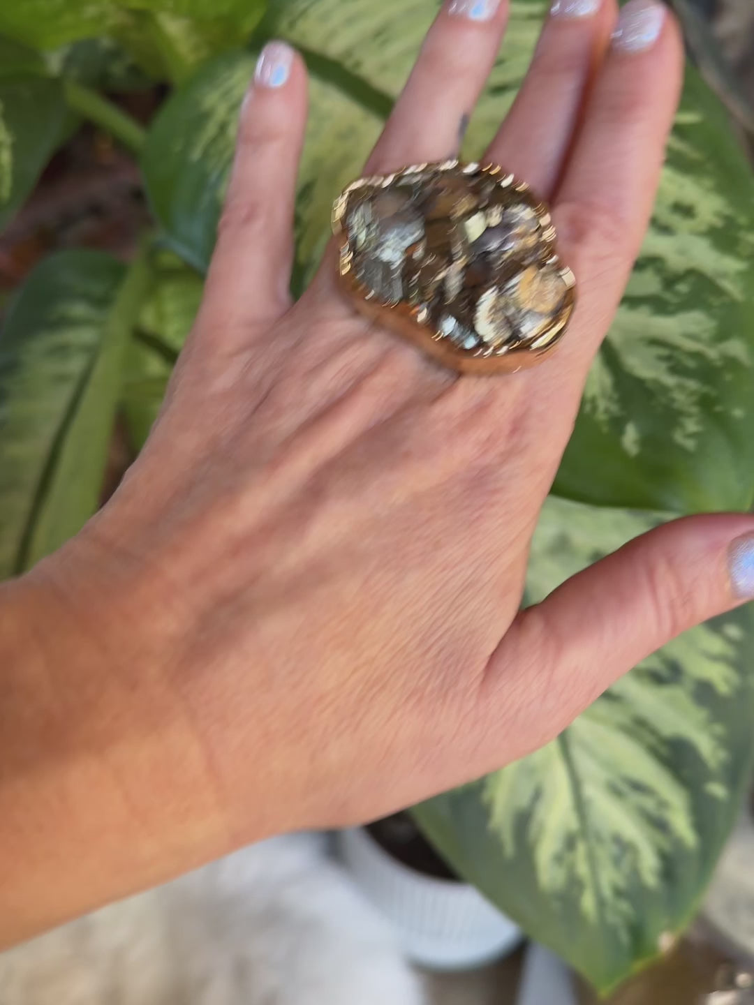Made from Pyrite stone set in brass ring with a very heavy real 24k gold overlay/10 x the weight of a plate.