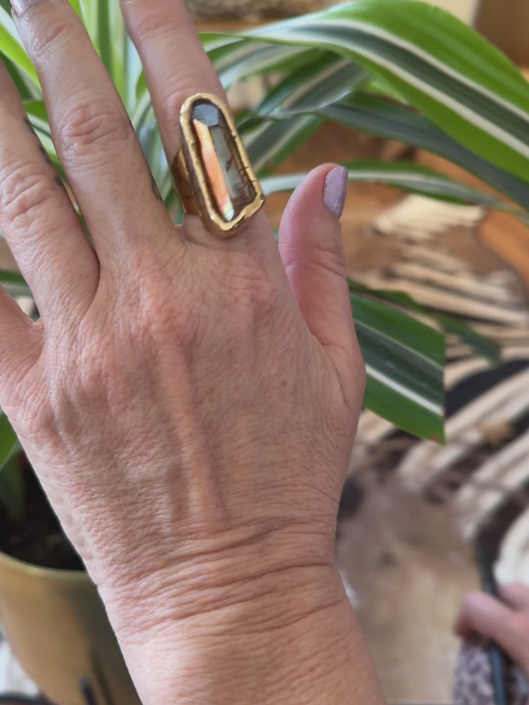 A stunning and mystical piece of jewelry that combines the unique beauty of Lemurian quartz with timeless elegance. This ring is a symbol of spiritual growth, enlightenment, and the enduring allure of natural gemstones.