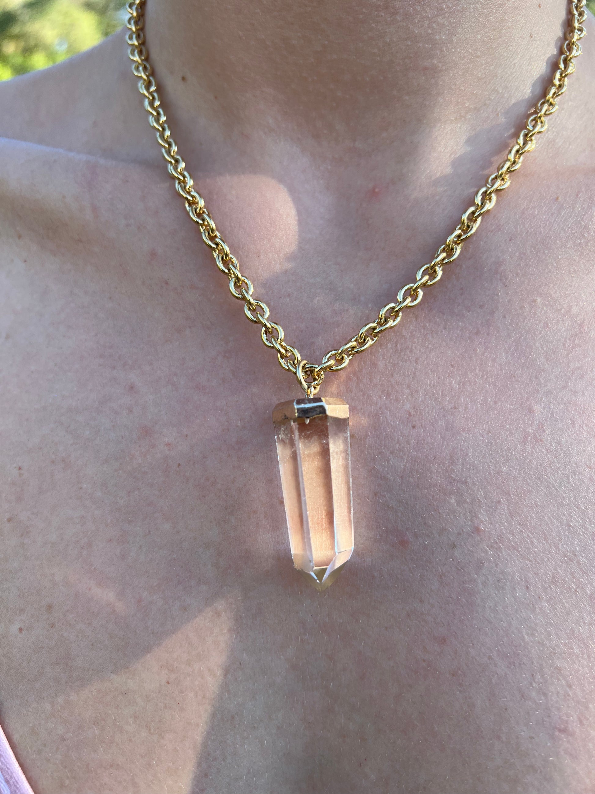 Made from 24k gold electroformed quartz point on on 2 1/2 foot 24k gold overlay chain (different length or chain style available on request)