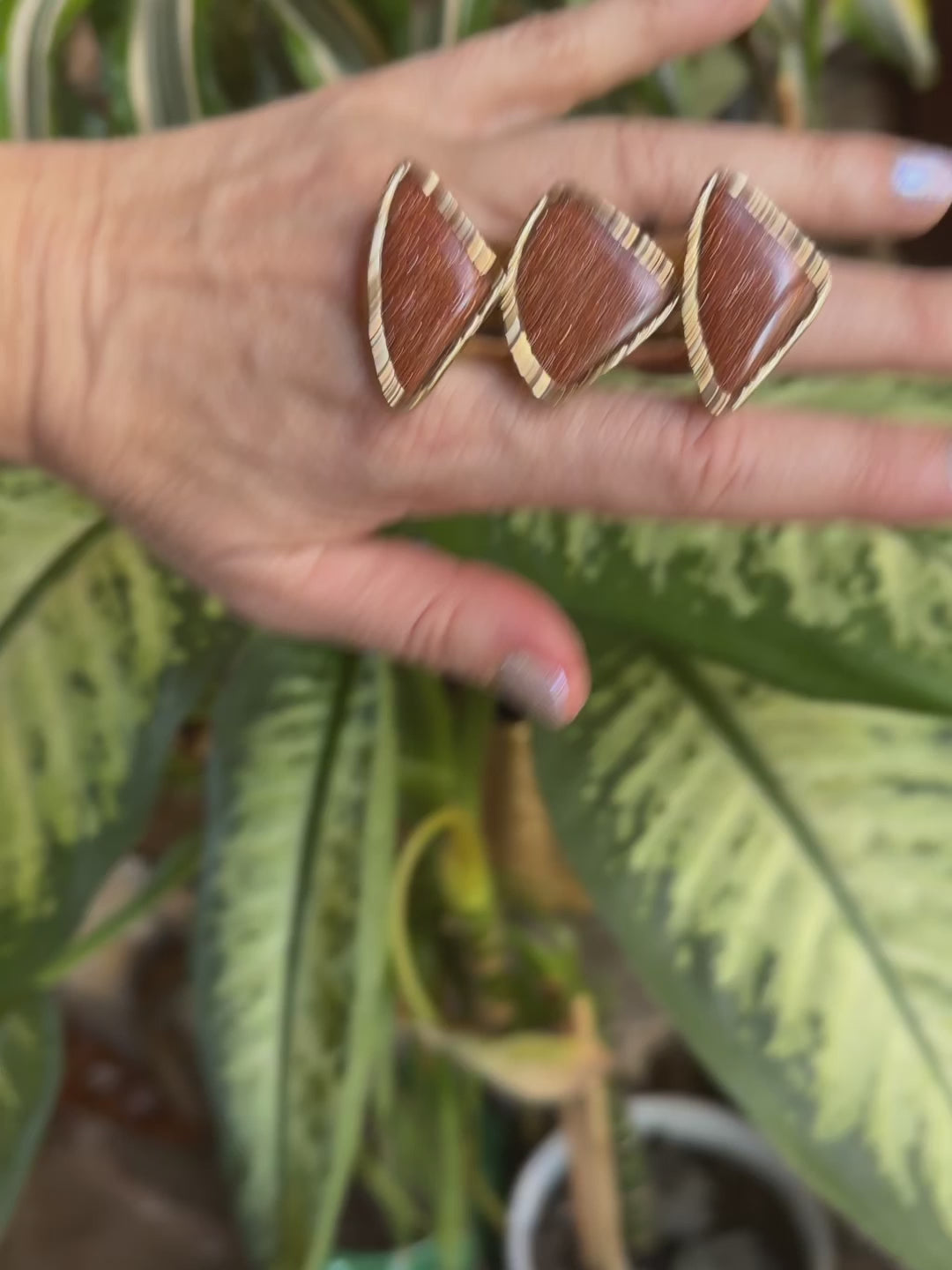 Gorgeous triple triangle shaped sunstones set in brass ring with heavy real 24k overlay; 10 x the weight of a gold plating to keep your ring gold!